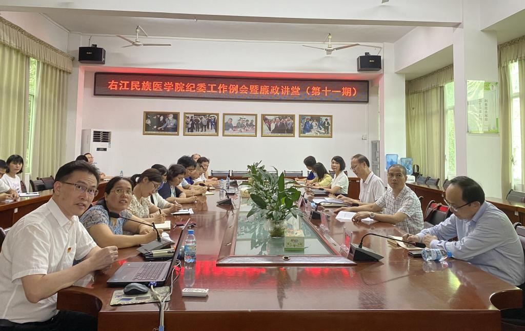 6月1日下午,英国上市官网365在图书馆二楼会议室召开纪委工作例会暨廉政讲堂(第十一期),会议传达学习了习近平总书记视察广西时的重要讲话和重要指示精神、区管高校纪检体制改革培训班有关精神以及上级纪委关于加强对“一把手”监督的有关要求,研究部署了下一阶段工作。学校党委常委、纪委书记刘灵光主持会议,英国上市官网365委员、各二级纪委书记、纪检委员、学校以及附属医院专职纪检干部参加会议。