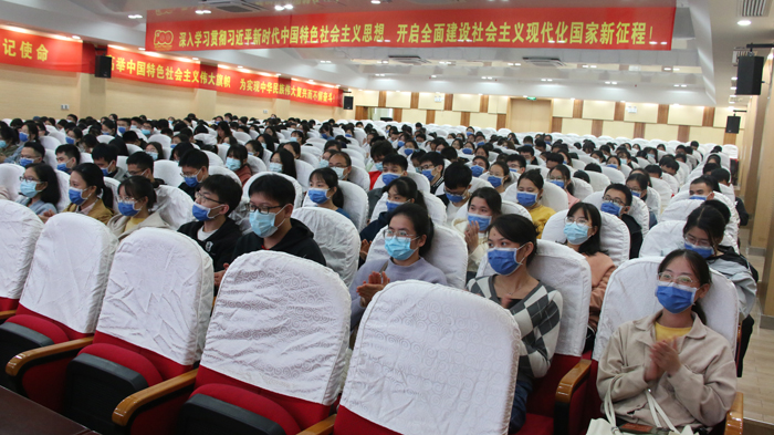 学校护理学院辅导员韦艳玲给实习生上微党课