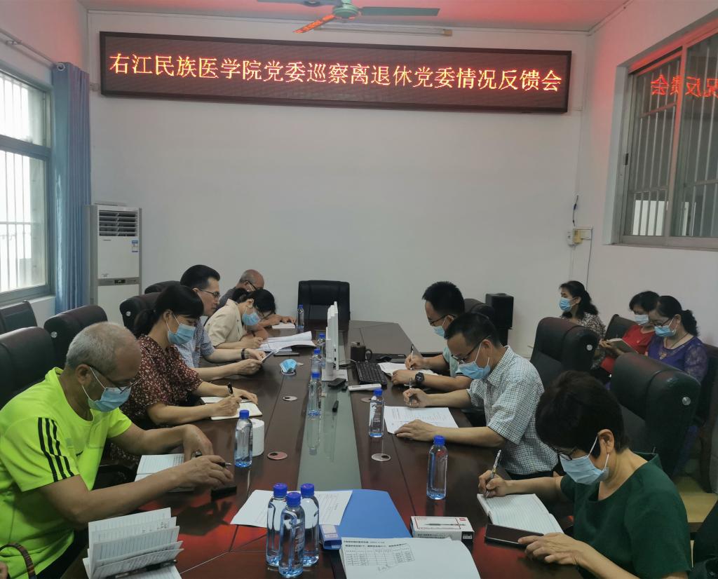 学校党委巡察离退休党委情况反馈会于2022年4月29日上午9点在离退处二楼会议室召开。巡察组组长黄世宁同志向离退休党委反馈了巡察意见。离退休工作处副处长黄中山主持会议,离退休工作处何荣生书记作表态讲话。