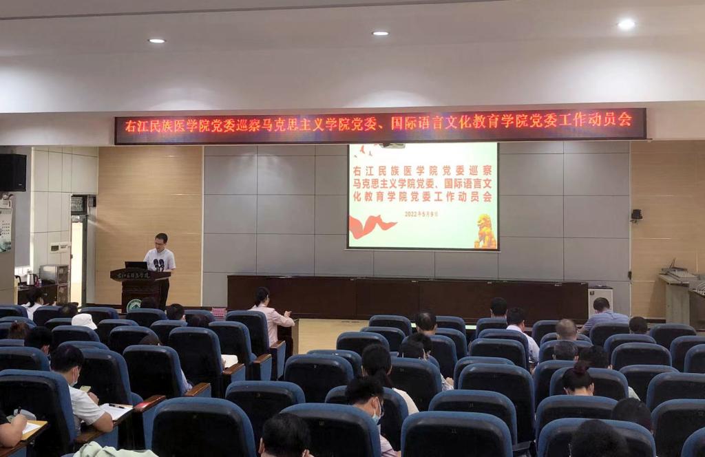5月9日下午,学校党委巡察组在学术报告厅召开第六轮巡察工作动员会。会上,巡察组组长黄世宁就即将开展的巡察工作作了动员讲话,国际语言文化教育学院党委书记李玉群主持会议,马克思主义学院党委书记许世华代表被巡察单位作表态发言。